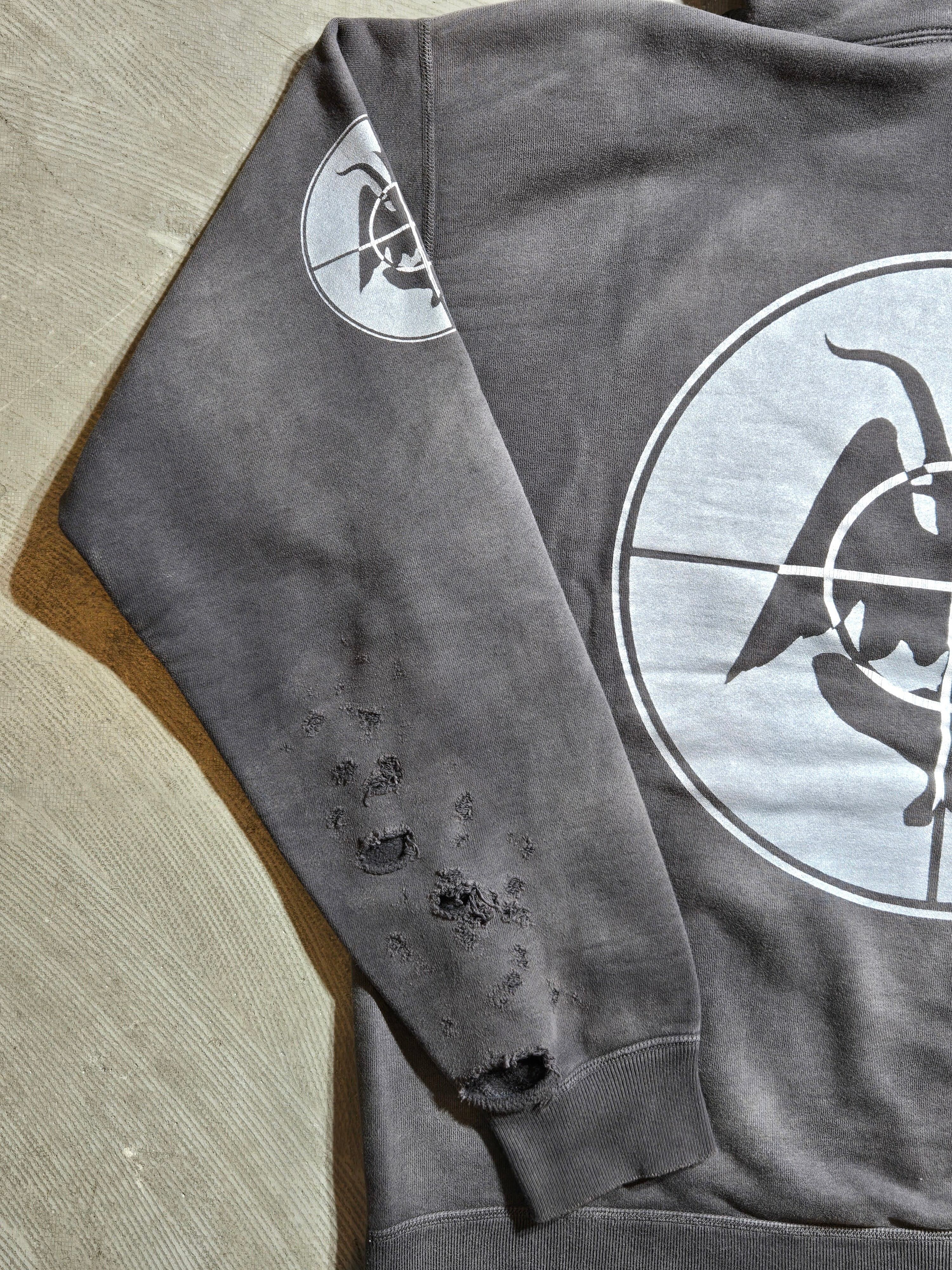 ©︎SAINT M×××××× セントマイケル Saint Michael Focus Hoodie パーカー ヴィンテージ加工 墨黒 サイズ表記XL 貴重サイズ パブリックエネミーサンプリング